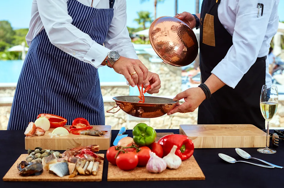 Die dreistündige Experience beginnt ebenfalls im Herzen von Loulé – diesmal auf dem farbenfrohen, maurisch inspirierten Markt. Hier wählen die Teilnehmer gemeinsam mit Küchenchef Stefano Bulla die besten regionalen Zutaten für eines der ursprünglichsten Gerichte der Algarve: die legendäre Cataplana. Zurück in der Küche erwartet die Gäste eine Meisterklasse in portugiesischer Kochkunst. Unter seiner Anleitung werden Venusmuscheln, Garnelen, Krabben und zarte Seeteufel-Filets vorbereitet, während Paprika, Thymian, Chili, Tomaten und Zwiebeln in Olivenöl sanft angeschwitzt werden – der Auftakt eines aromatischen Zusammenspiels, das die Essenz der Algarve einfängt.