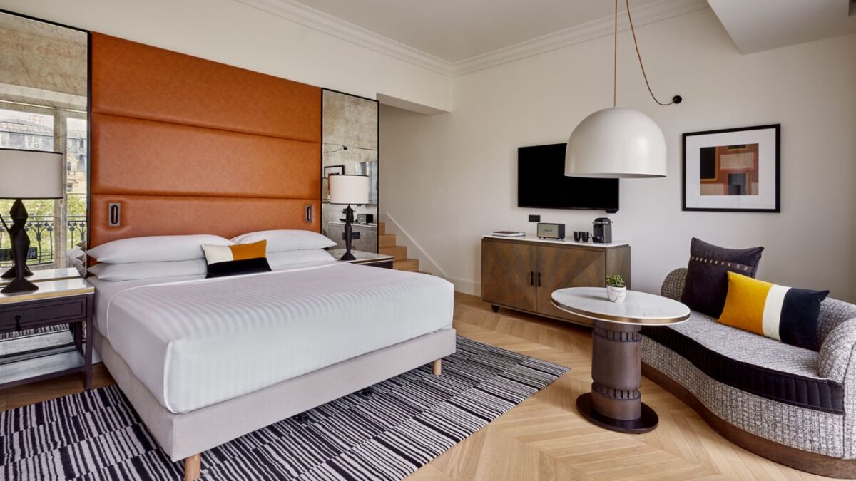 Nur wenige Meter auf der gegenüberliegenden Straßenseite entfernt hat sich Marriott schon längst einen kräftigen Bissen vom Hotelkuchen der Touristik auf der Champs-Élysées gesichert. Das heutige Marriott Hotel Champs-Élysées, einst ein elegantes Kaufhaus aus dem 19. Jahrhundert, war einer der Orte in Frankreichs Hauptstadt, in dem Mode und Luxusartikel von der Pariser Haute Société erworben wurden.
