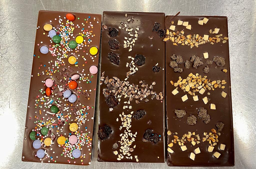 Denn: „Schokolade hat wie der Wein je nach Terroir und Klima einen ganz unterschiedlichen Geschmack“, erzählt er. Bevor die Teilnehmenden schließlich selbst zu Werke gehen. Erst fließt cremige Milch- und Zartbitterschokolade in Schablonen, dann verziert jeder seine Tafeln dekorativ mit Nüssen, Smarties, Krokant & Co. Am Ende werden sie edel in Zellophanpapier verpackt – zum genussvollen Wegknabbern zu Hause. Edel. Als Erinnerung daran, einmal selbst Chocolatier gewesen zu sein – wenigstens einen wundervollen Nachmittag lang …