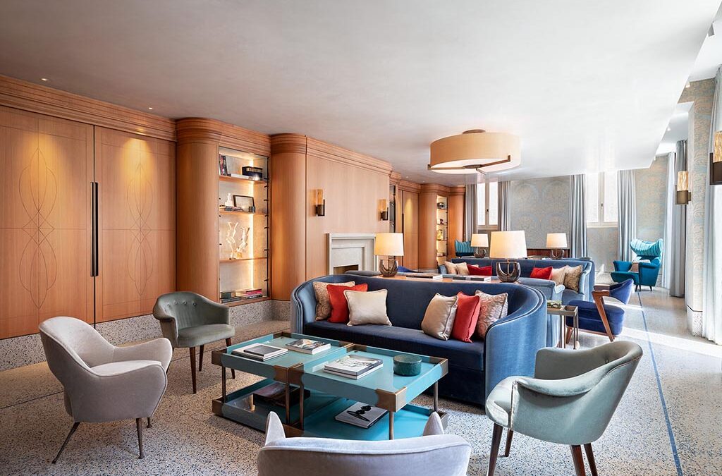 Der venezianische Stil ist in der gesamten Einrichtung des Hotels erkennbar, von den maßgeschneiderten und individuell angefertigten Stoffen bis hin zu den handwerklichen Kreationen, die sich auf die geschwungenen Formen der Gondeln, die dekorativen Motive des Dogenpalasts, die Marmorböden der Kirche San Giorgio Maggiore und das fließende Wasser der Kanäle beziehen. Inspiriert vom künstlerischen Erbe der Stadt wurde auch eine vielseitige Sammlung von Kunstwerken und Skulpturen zusammengestellt, die Luxusreisenden das alte Venedig auf moderne Weise näherbringt.