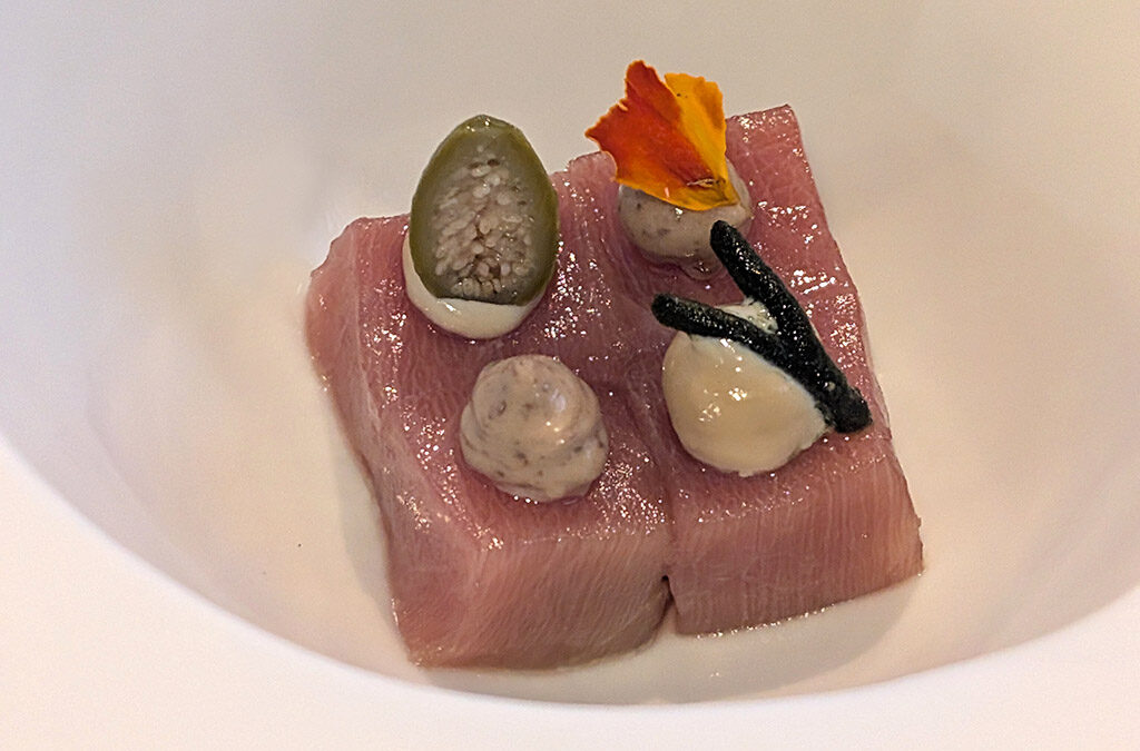 Zartrosa im Licht, mit feiner Perlage, entfaltet er Noten von Erdbeeren, Granatapfel und Rosenblättern – frisch, lebendig und harmonisch am Gaumen. Perfekt begleitet wird er von den kunstvoll kreierten Bocconcino-Appetizern (Ricotta- und Passionsfrucht-Bonbons, Polenta und Auberginen „Bocconcino” alla Parmigiana, Nigiri aus Atlantischem Wolfsbarsch) wo italienische Leidenschaft, Kreativität und Genuss von Chefkoch Niki Pavanelli zu einer kulinarischen Symphonie verschmelzen.