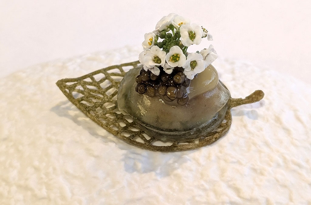Als Zwischengang wird Parmigiano & Balsamico gereicht. Es besteht aus Eis auf der Basis von 60 Monaten gereiften Parmigiano, Crumble aus 36 Monate gereiftem Parmigiano und Schaum aus 80 Monate gereiftem Parmigiano. Dazu 40 Jahre alter Balsamico-Essig, gereift in französischer Eiche. Diese Kombination stellt eine kleine Erinnerung an die Heimat von Chefkoch Niki Pavanelli dar, der aus der Emilia Romagna stammt.