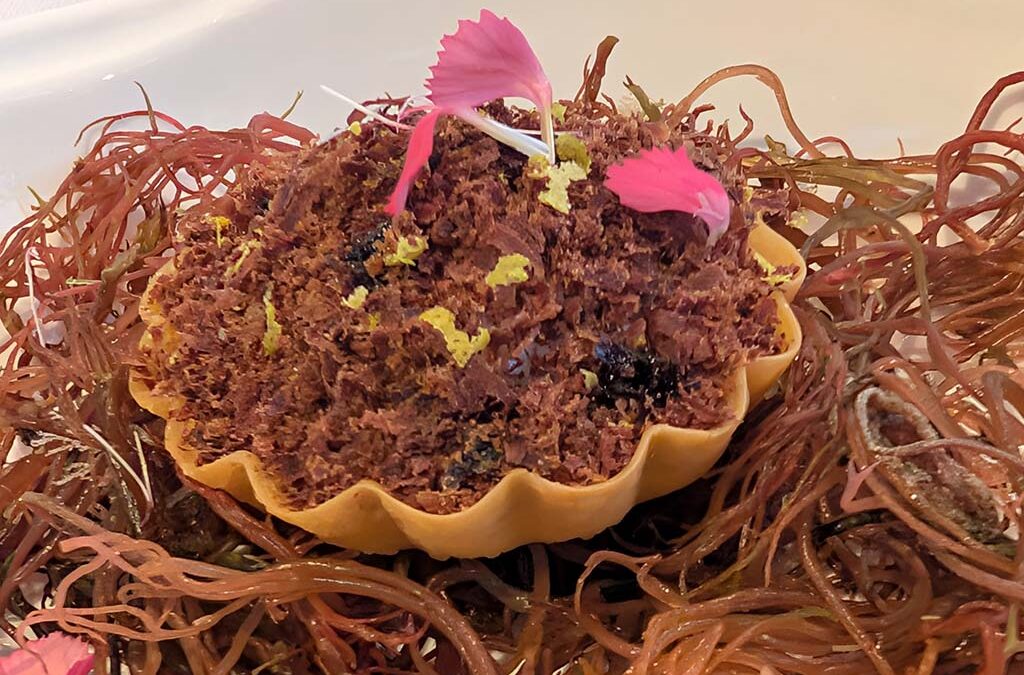 Das Dessert Mattino birgt eine Erinnerung an die ersten Augenblicke des Tages. Inspiriert von den Sonnenaufgängen Italiens und der Kanarischen Inseln vereint diese Kreation vertraute Aromen des Morgens: frisch gebrühter Kaffee, knusprige Kekse, Banane und geröstetes Gofio. Alles ist leicht geröstet, warm, duftend – ein Sinnbild für den Neubeginn. Venezolanischer Kakao und Gofio verschmelzen mit einer langsam karamellisierten Bananen-Noisette-Konfitüre zu einer Komposition, die Kulturen und Kontinente verbindet. Dazu der Antinori Castello della Sala Muffato della Sala 2022: elegant, cremig und von verführerischer Balance zwischen Süße und Frische. Noten von Pfirsich, Zitrus, Honig und feiner Mineralität machen ihn zum idealen Begleiter – ein flüssiger Sonnenaufgang im Glas.