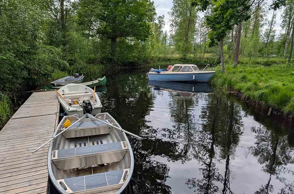 Das Floß ist mehr als eine Unterkunft – es ist ein Rückzugsort. Ausgestattet mit einer Matratze, Decken, Laternenlicht und dem Nötigsten, schläft man hier nicht einfach draußen. Man schläft mitten in der Natur. Wer früh aufwacht, hört das erste Zwitschern der Vögel und sieht den Nebel, der sich langsam vom Wasser hebt. Es sind sogar Spuren eines Elches zu entdecken. Manchmal schwimmt ein Reiher vorbei, manchmal huscht ein Fisch knapp unter der Oberfläche entlang. Alles entschleunigt.