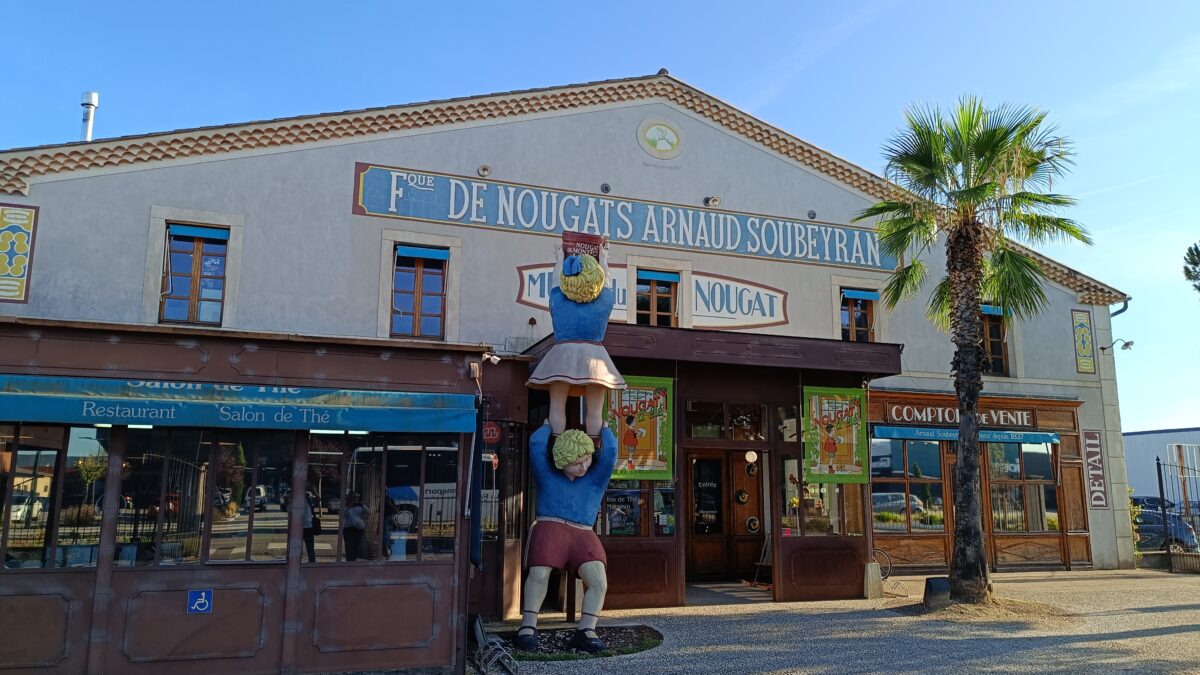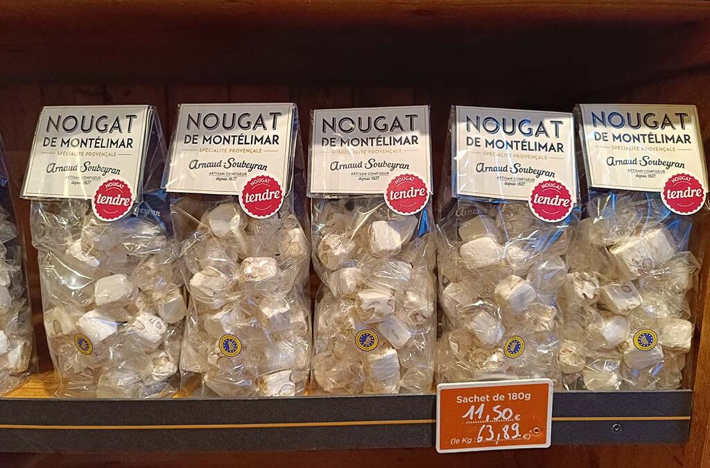 Direkt an der N7 am Rande des Ortes Montélimar liegt die Produktionsstätte eines weiteren für die Region typischen Produkts. Der Nougathersteller Arnaud Soubeyran hat hier eine der ältesten noch aktiven Nougat-Manufakturen: Seit 1837 produziert Arnaud Soubeyran das süße Nougat aus Kupferkesseln, hergestellt mit traditionellen Methoden und Zutaten aus der Region. Tatsächlich ist Nougat hier ein Kulturgut, ist Beleg für die regionale Identität. Hier das eine oder andere Stück Nougat zu naschen, ist bei einem Besuch unabwendbar…