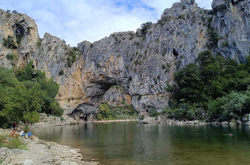 Wen es von Aubenas südlich zieht, passiert sicher die Schlucht der Ardèche und den berühmten Felsenbogen Pont d’Arc. Ein wahrhafter Publikumsmagnet ist diese Naturgewalt, die Wassersportler, Badegäste und Wanderer gleichermaßen anlockt. Hier zu verweilen und die Blicke über die Schluchten und hindurch des Felsenbogens schweifen zu lassen ist ein wahres Eintauchen in die Schönheit der Region.