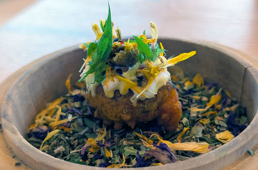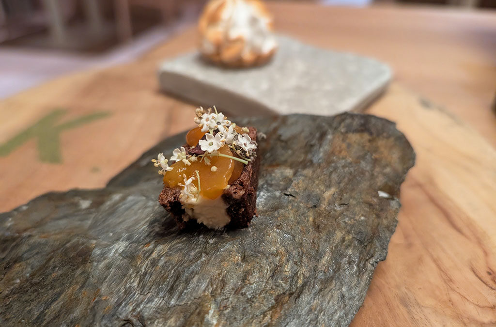 Auf einer Höhe zwischen 1.000 und 2.000 Metern öffnet sich ein Lustgarten der Natur – ein Füllhorn an Düften, Blüten und Aromen. Jeden Tag können neue Schätze entdeckt werden. Mit geschlossenen Augen lohnt es, den zum Beispiel zarten Duft frisch gepflückter Bärlauchblätter einzuatmen. Der Gang „Wilder Wald“ spiegelt diese Verbundenheit: gebratener Rehrücken trifft auf Waldkräuter, Heumilch-Brioche, Pilztatar und Lärchenöl – ein harmonisches Zusammenspiel von Wald und Wiese, das Sinne und Seele berührt.