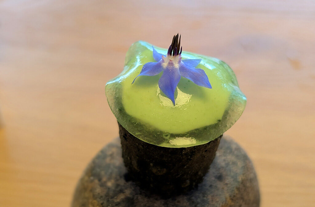 Zwischen 700 und 900 Metern öffnet sich für Vitus Winkler ein weitere Ort der Achtsamkeit: das Feld. Hier zeigt sich die enge Verbindung zwischen Mensch und Natur, die für ihn die Grundlage jeder Mahlzeit bildet. Auf seinen Kräuterwanderungen entdeckt er nicht nur Pflanzen, sondern auch die Verantwortung, die mit jedem Schritt wächst. Felder sind lebendige Räume, die Respekt verlangen. Das Gericht „Steinernes Meer“ erzählt diese Geschichte: gebratene Alpengarnele trifft auf Raviolo, Creme und Sorbet aus Petersilienwurzel, begleitet von würzigem Tagetes, Quitte und einem zarten Garumschaum – eine Hommage an die Kraft und Vielfalt der Natur.