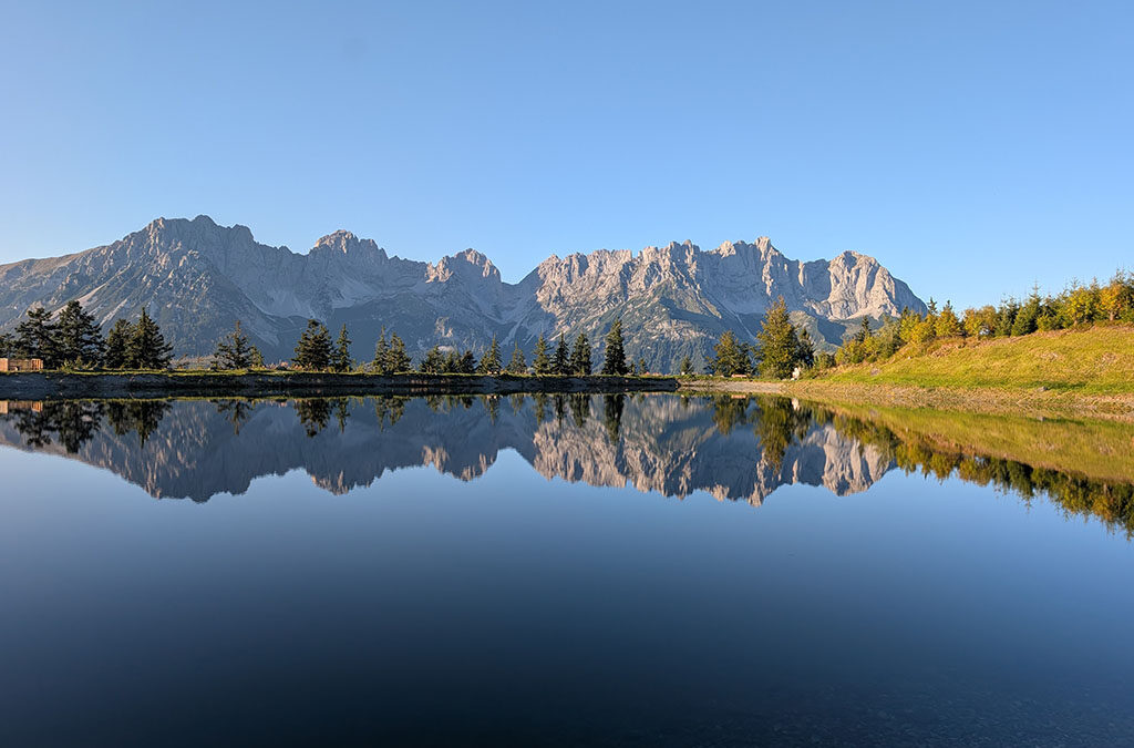 Ein Spaziergang zum Astbergsee oberhalb der jezz Alm führt in eine zauberhafte Welt. Die glatte Wasseroberfläche spiegelt Himmel und Berggipfel, während sanfte Wellen das Licht spielen lassen – ein stiller, magischer Moment zum Verweilen und Träumen.
