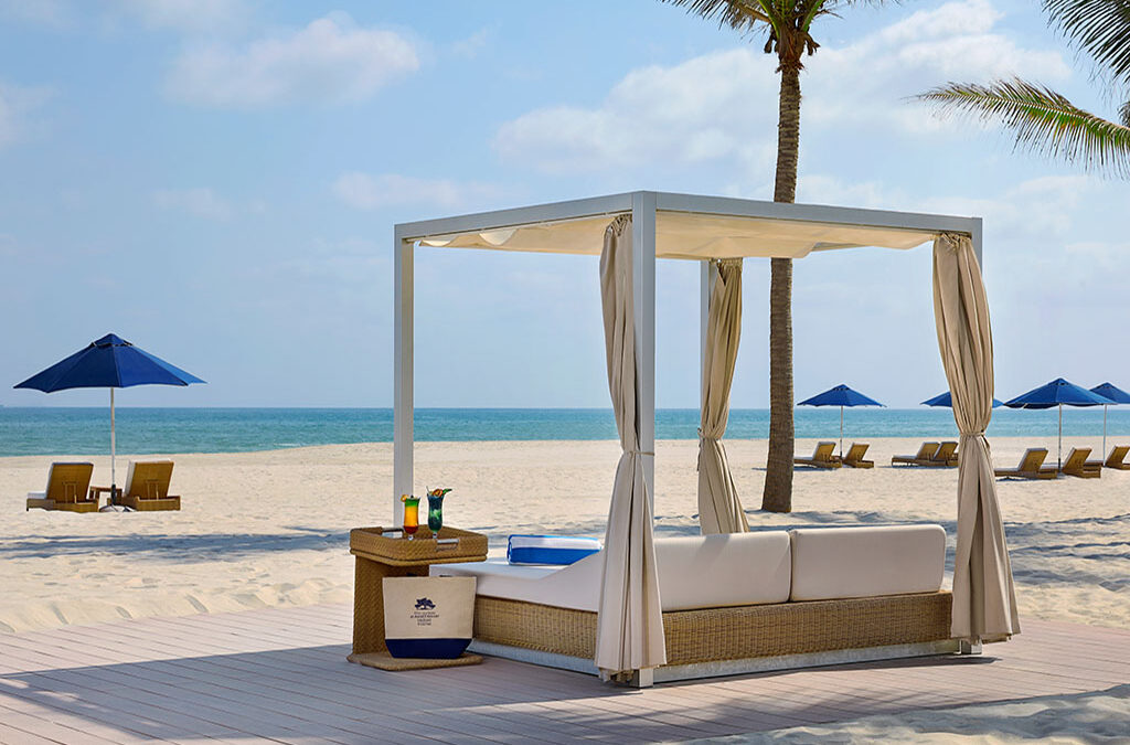 Nach dem Sightseeing gönnen wir uns einen faulen Nachmittag, naschen Datteln und Pistazien in unserer großzügigen Villa. Deren Planschbecken ist groß genug, um uns abzukühlen, wenn wir keine Lust haben, bis zum großen Pool oder ins Meer zu gehen. Dabei ist das durchaus zu empfehlen, denn der 250 Meter breite Privatstrand ist mit bequemen Cabanas und Liegestühlen ausgestattet, auf denen man die Füße in den feinen Sand stecken kann. So geht Barfußluxus auf omanische Art. So geht Urlaub mit Meer-Wert. In den kühleren Monaten würden wir wohl auch das marokkanische Hamam nutzen. Oder uns eine vierhändige Massage mit aromatischem Harzöl im Anantara Spa gönnen.